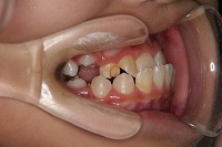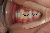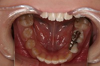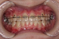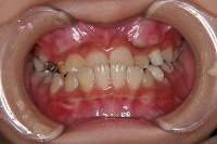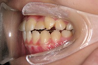 反対咬合を主訴に来院された、初診時9歳2か月の女の子です。診断「上顎骨の後方位による骨格性下顎前突」1期治療で反対咬合の解消と上顎の前方牽引を行いました。2期治療は抜歯をせず治療を行いました。