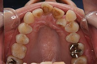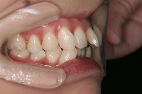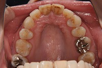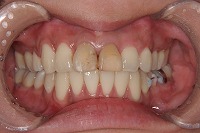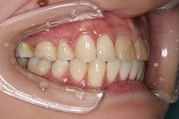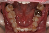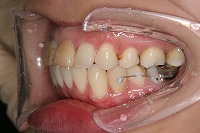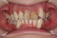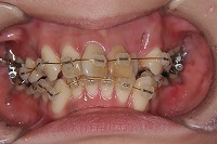 前歯が出ていて歯並びが悪い事を主訴に来院された、26歳1か月の女性です。診断「歯と歯槽基底の大きさの不調和による叢生」上顎は右側第1小臼歯と左側の犬歯、下顎は抜歯をせず治療を行いました。